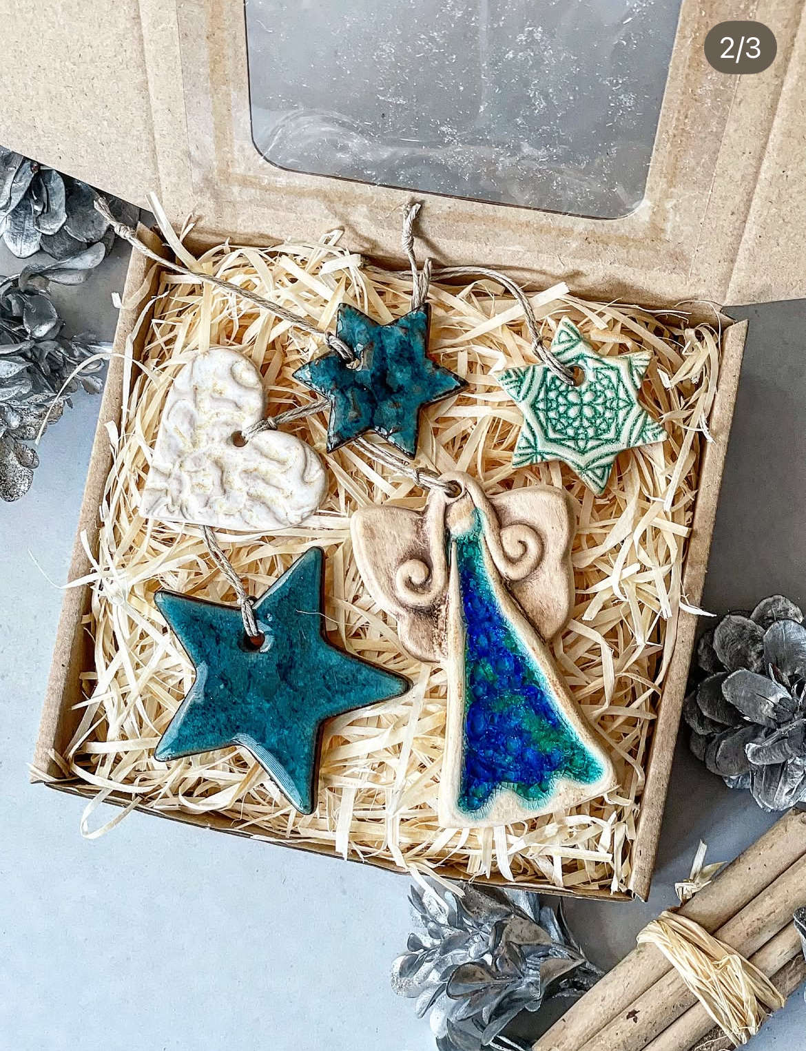 Box świąteczny BLUE mały (5 ceramicznych ozdób choinkowych)