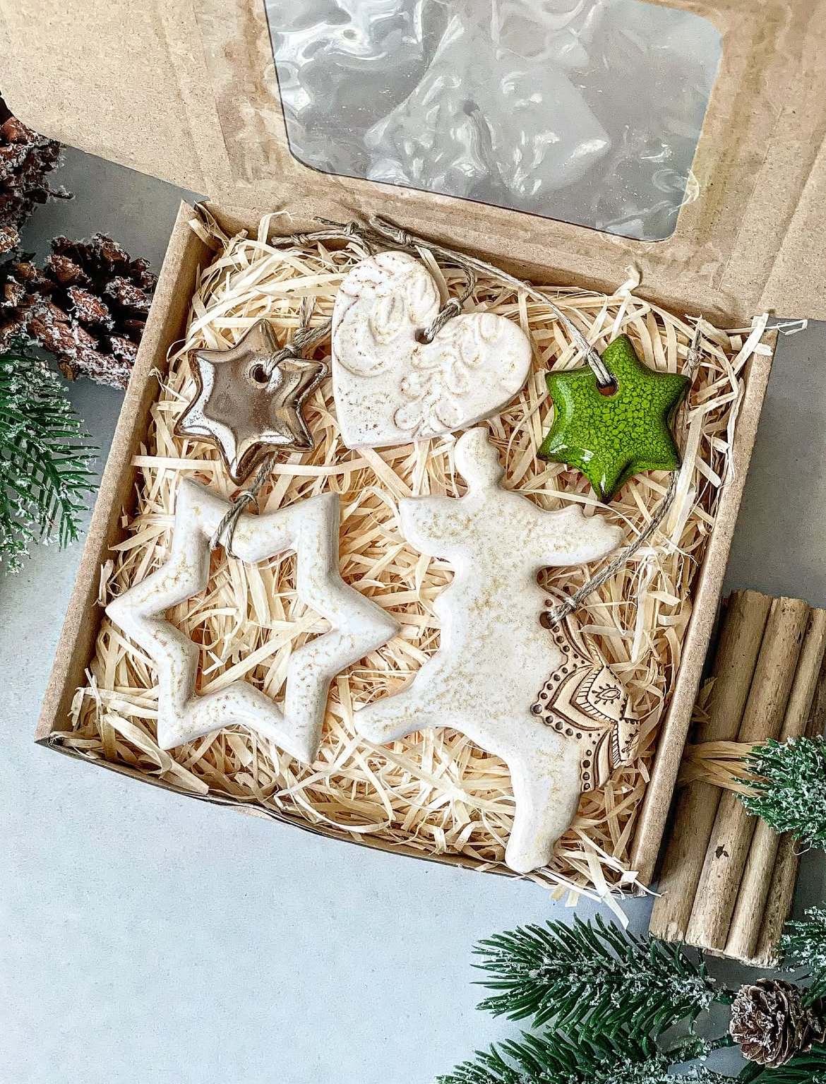 Strona główna » Boże Narodzenie » Box świąteczny ECRU mały (5 ceramicznych ozdób choinkowych)