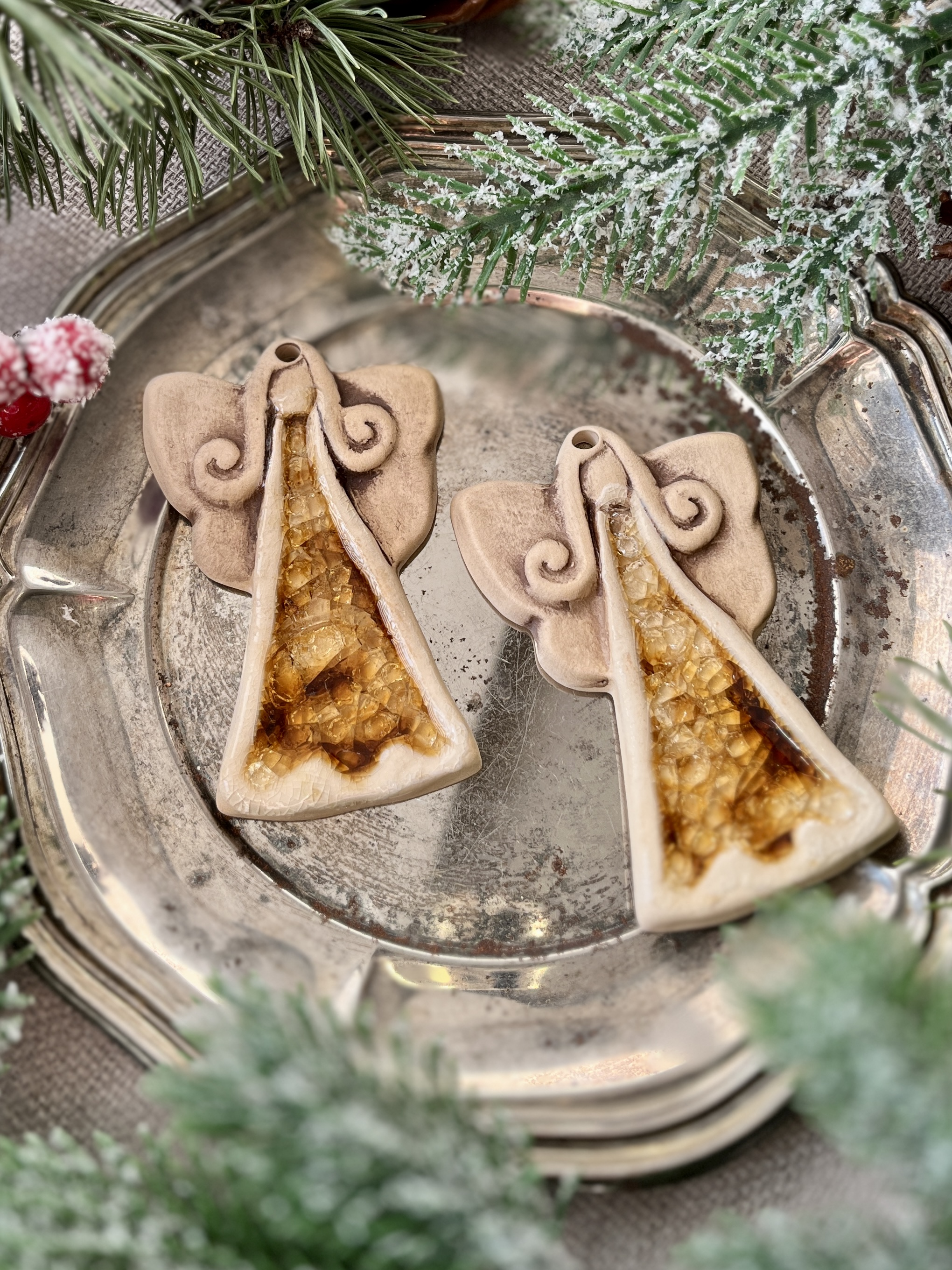 Ceramiczna zawieszka choinkowa ANIOŁEK BURSZTYNOWY