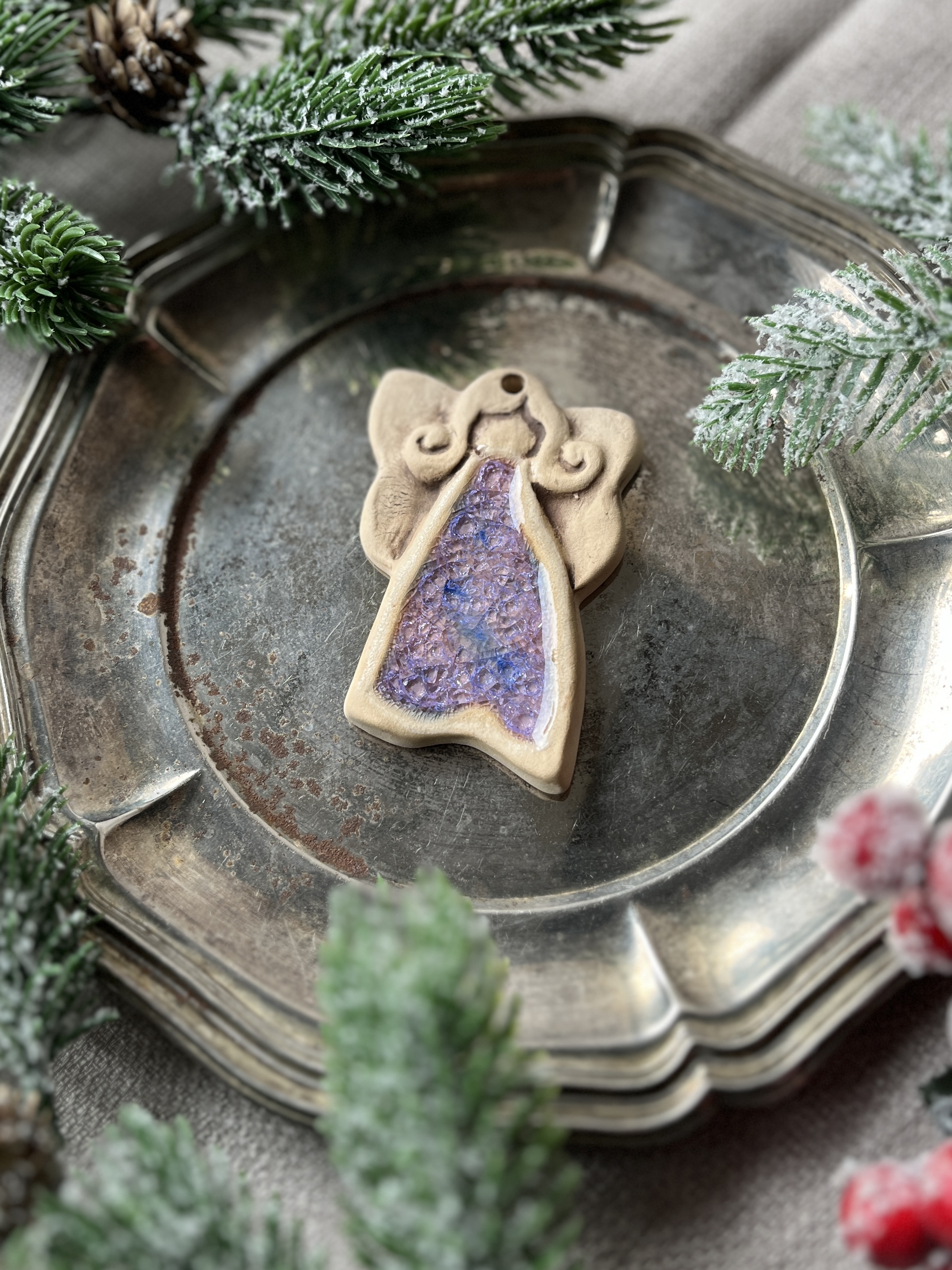 Ceramiczna zawieszka choinkowa ANIOŁEK FIOLETOWY