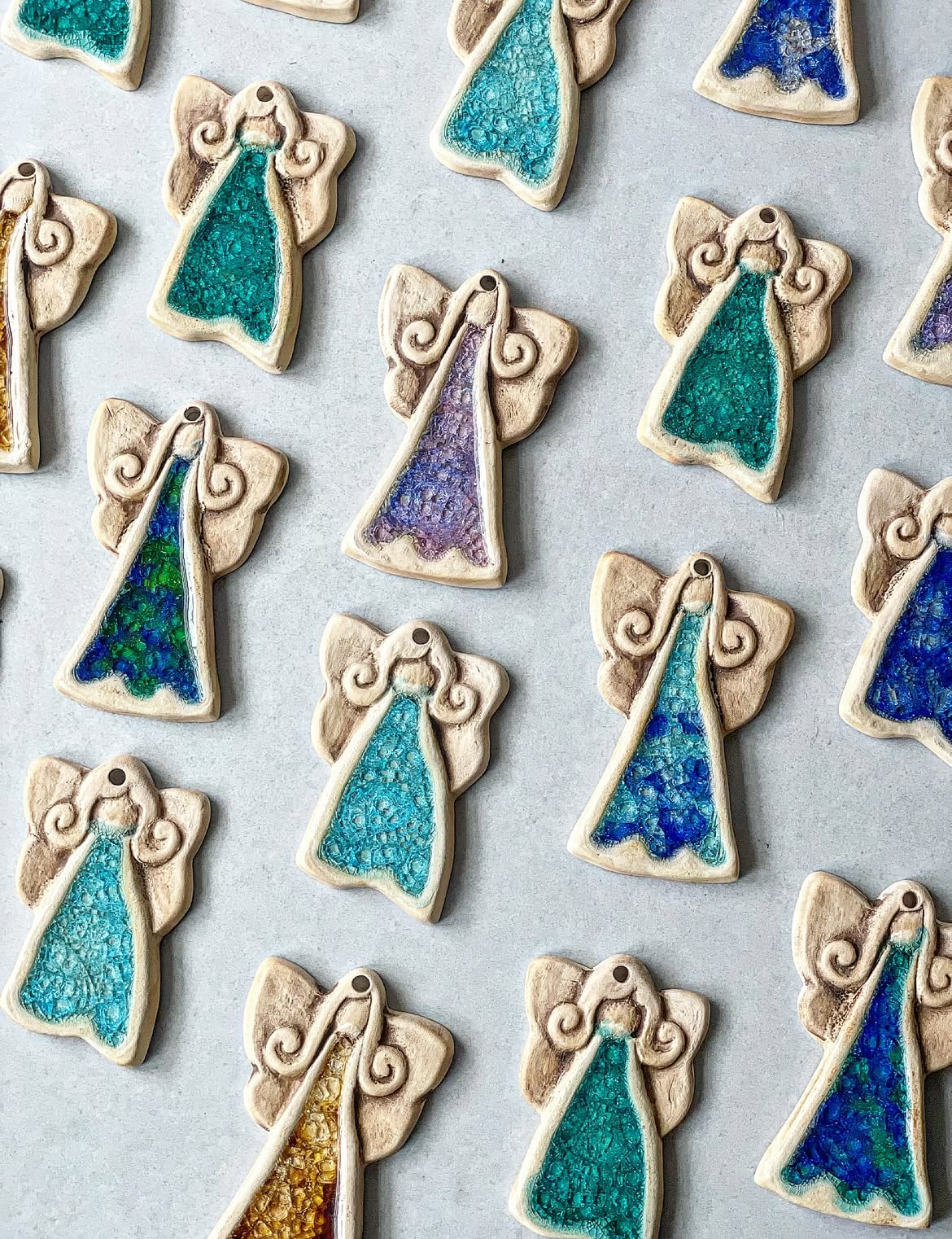 Zawieszka ceramiczna w kształcie aniołka. Wykonana ręcznie z gliny.
