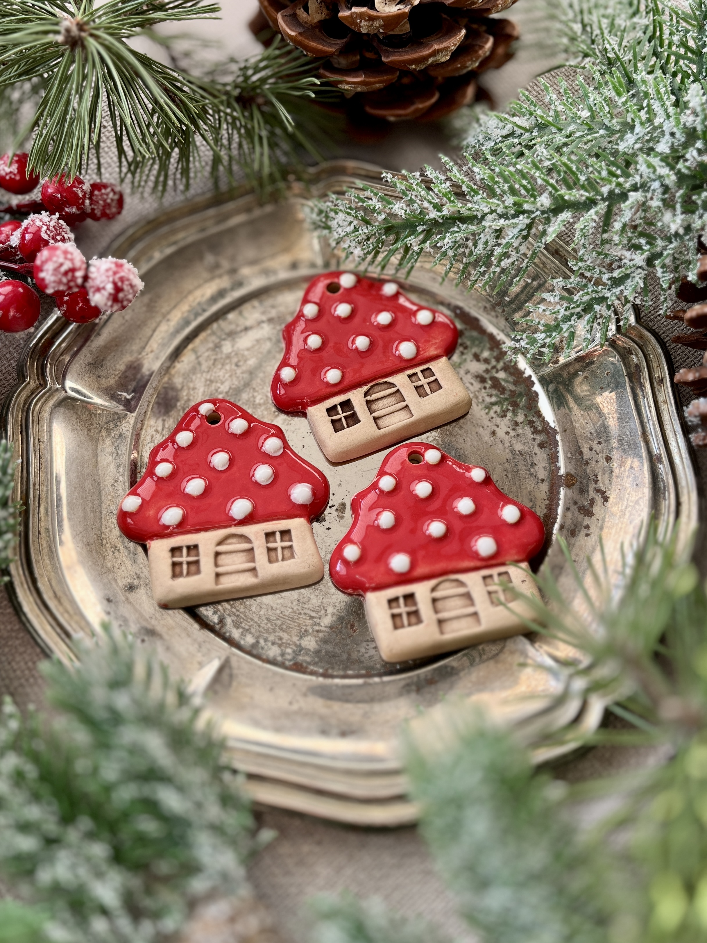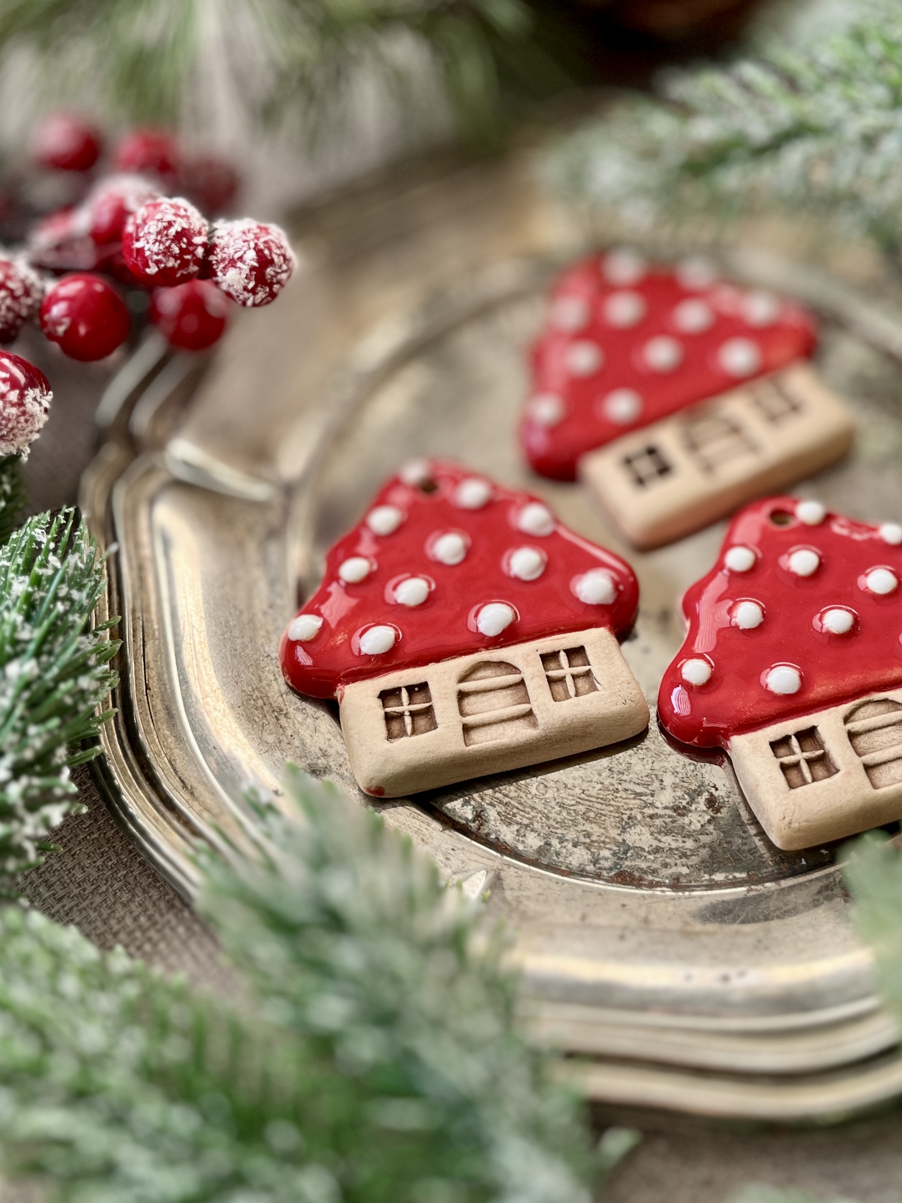 Strona główna » Boże Narodzenie » Ceramiczna zawieszka choinkowa CHATKA CZERWONA KROPKI