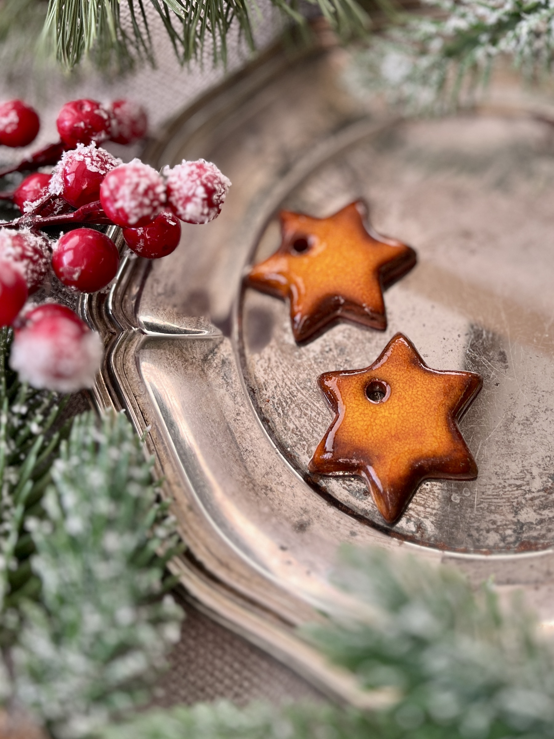 Ceramiczna zawieszka choinkowa GWIAZDKA POMARAŃCZOWA mała