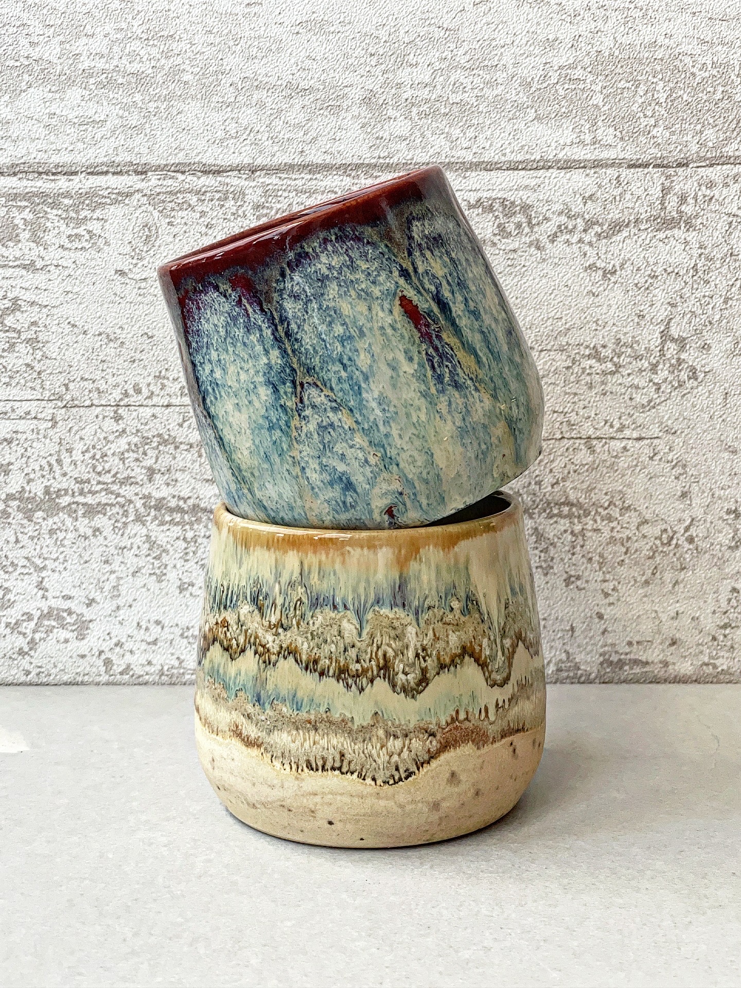 Ręcznie lepiona czarka wykonana z jasnej gliny.