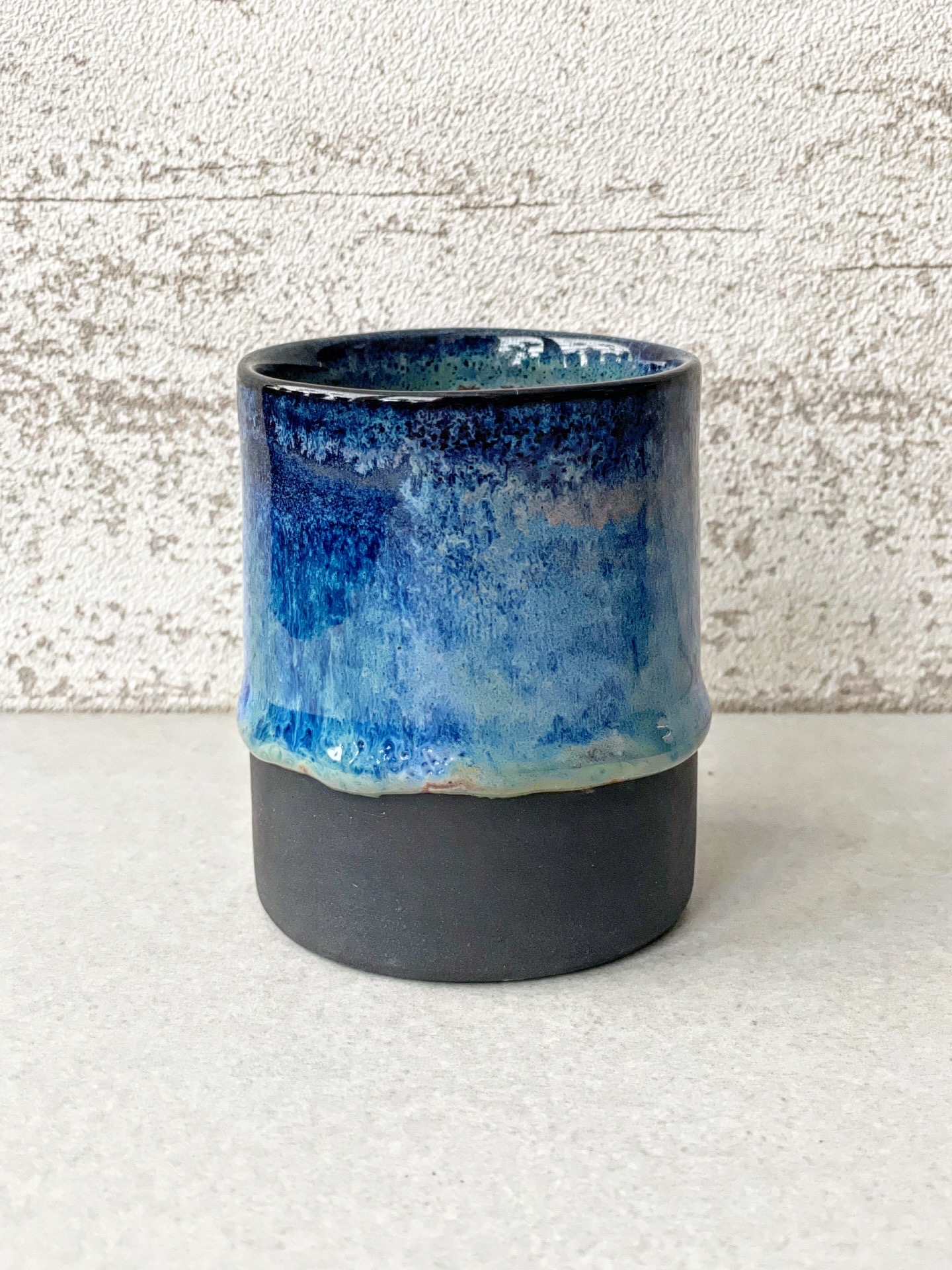 Czarka wykonana na kole z czarnej porcelany.
