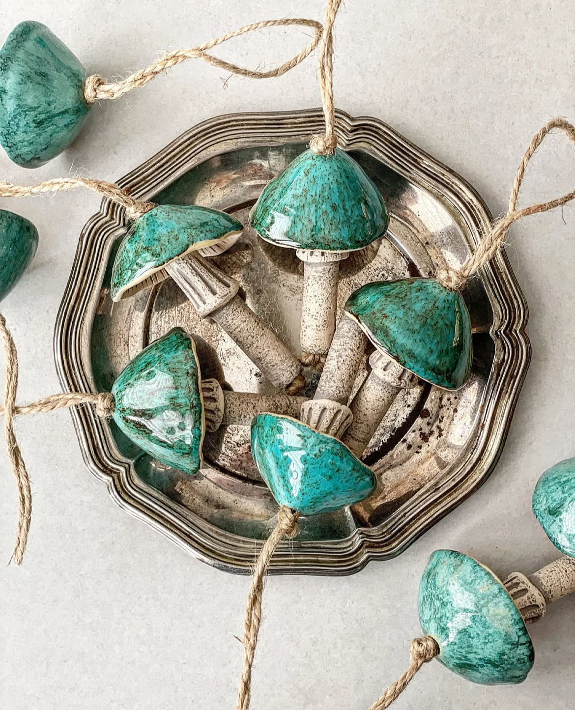 Ceramiczny grzybek-zawieszka. Z ciemno-zielonym kapeluszem.