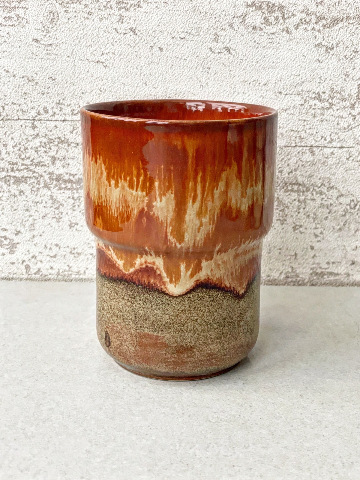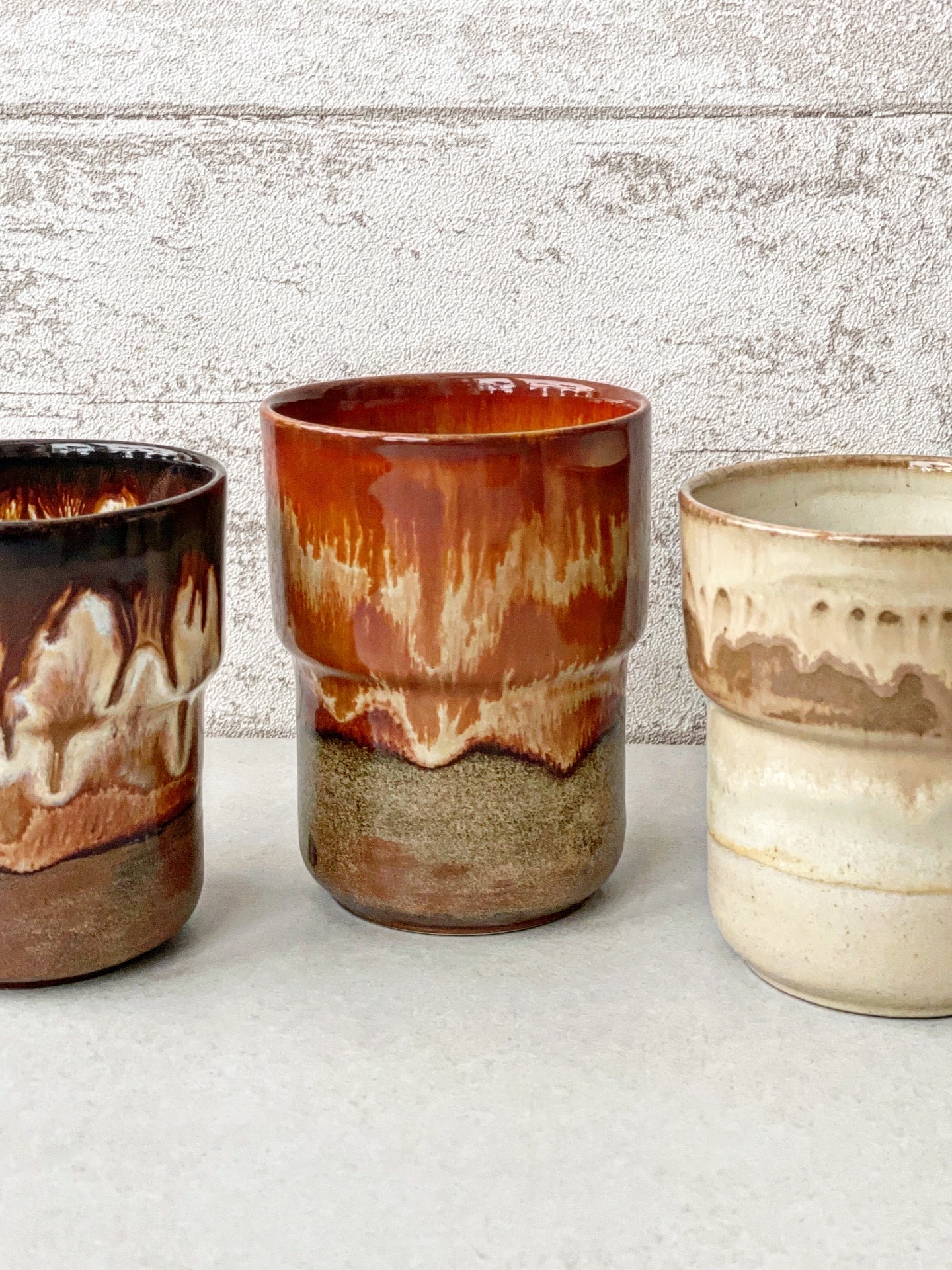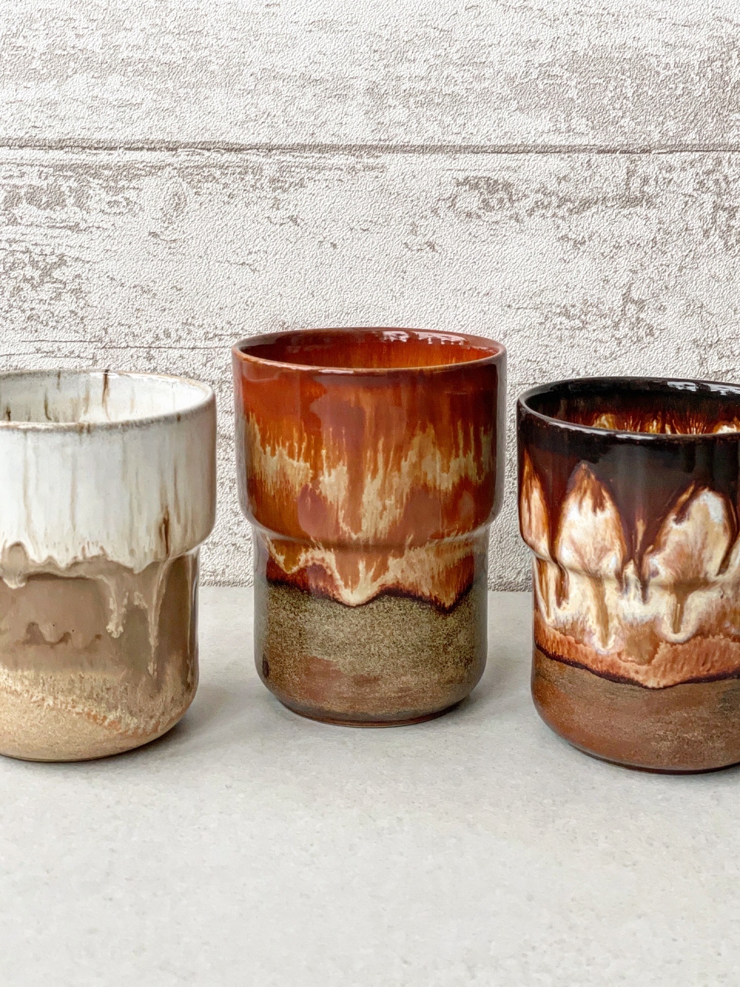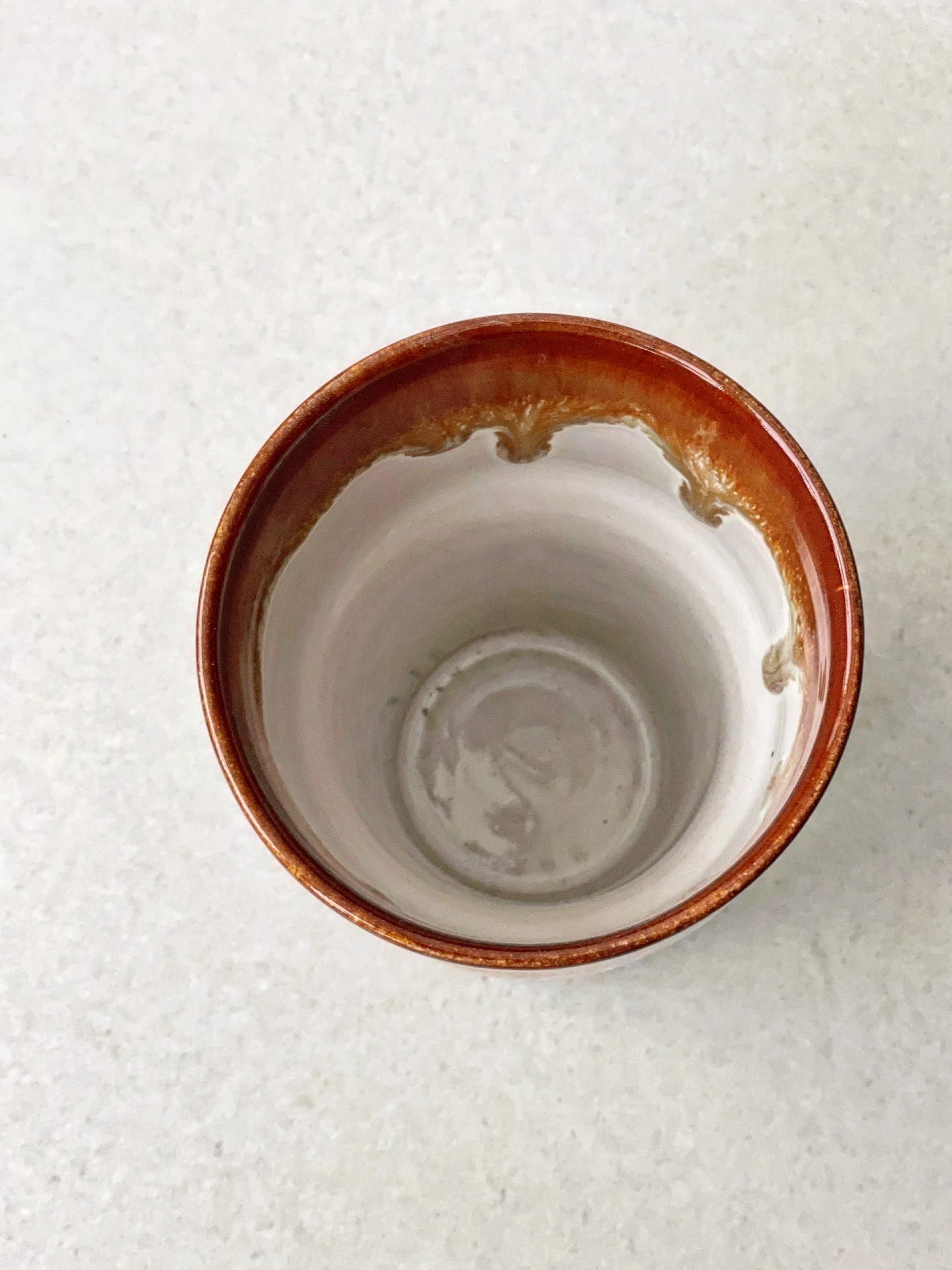 Kubek bez ucha, wykonany ręcznie na kole z jasnej gliny.
